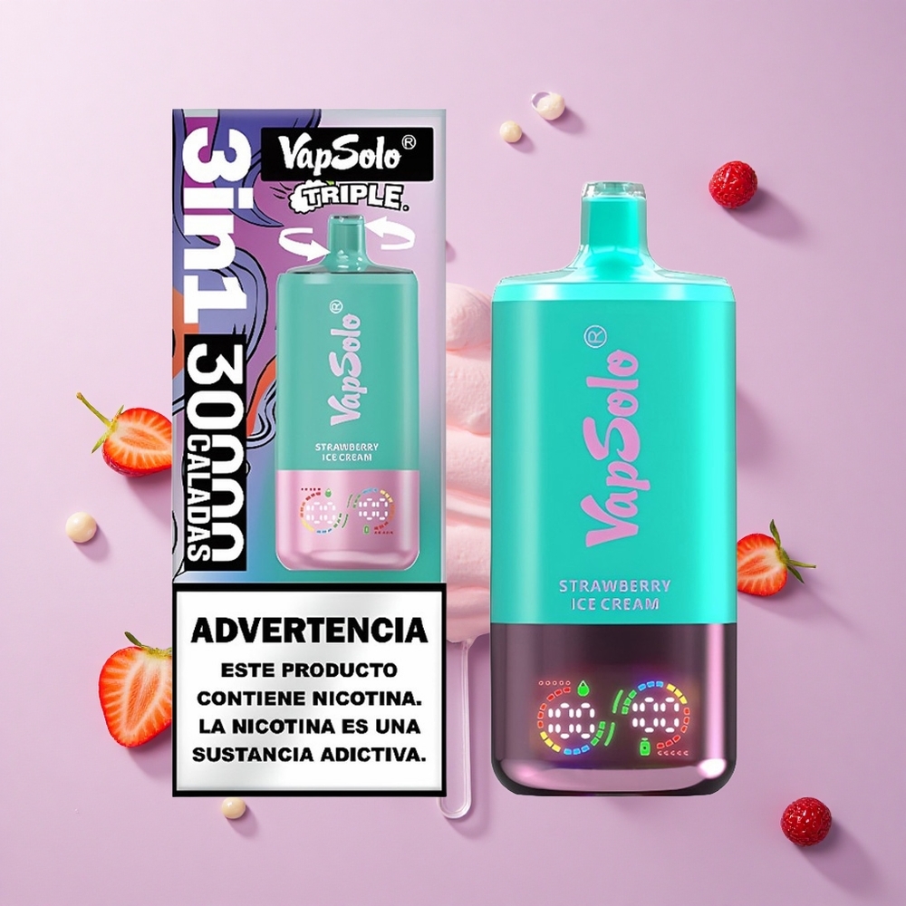 Aardbei Ijs Vapsolo Triple 30000 Puffs Wegwerp Vape 40ml vloeistof, 3 oliedepots