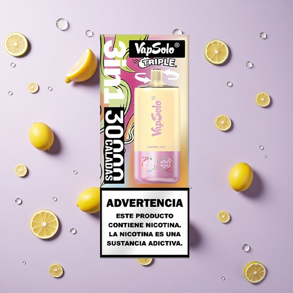 Citroen Limoen VapSolo Triple 30000 Puffs Wegwerp Vape met 40ml E-Liquid en Type-C Oplaadpoort