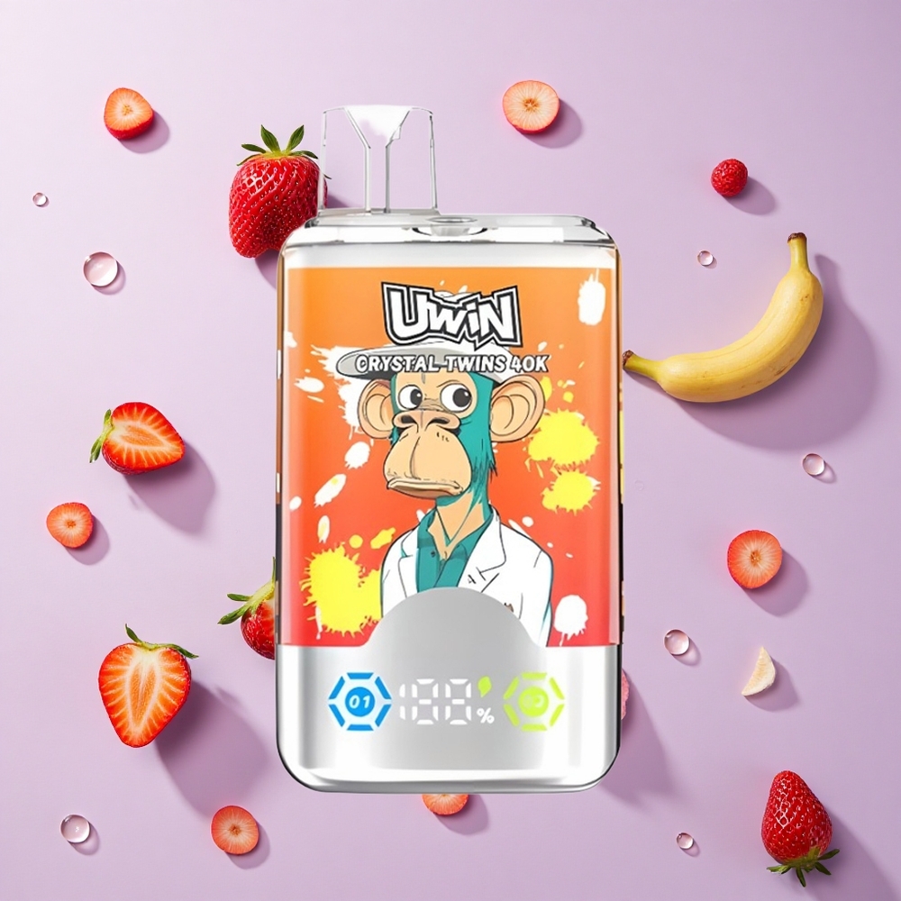 Aardbei Banaan Liefde 66 Uwin Crystal Twins 40000 Puffs Wegwerp Vape met 32ml E-vloeistof Capaciteit en Oplaadbaar Ontwerp: 850mAh Batterij