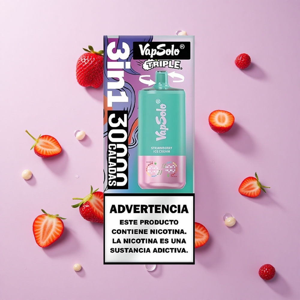 Aardbei Ijs Vapsolo Triple 30000 Puffs Wegwerp Vape 40ml vloeistof, 3 oliedepots