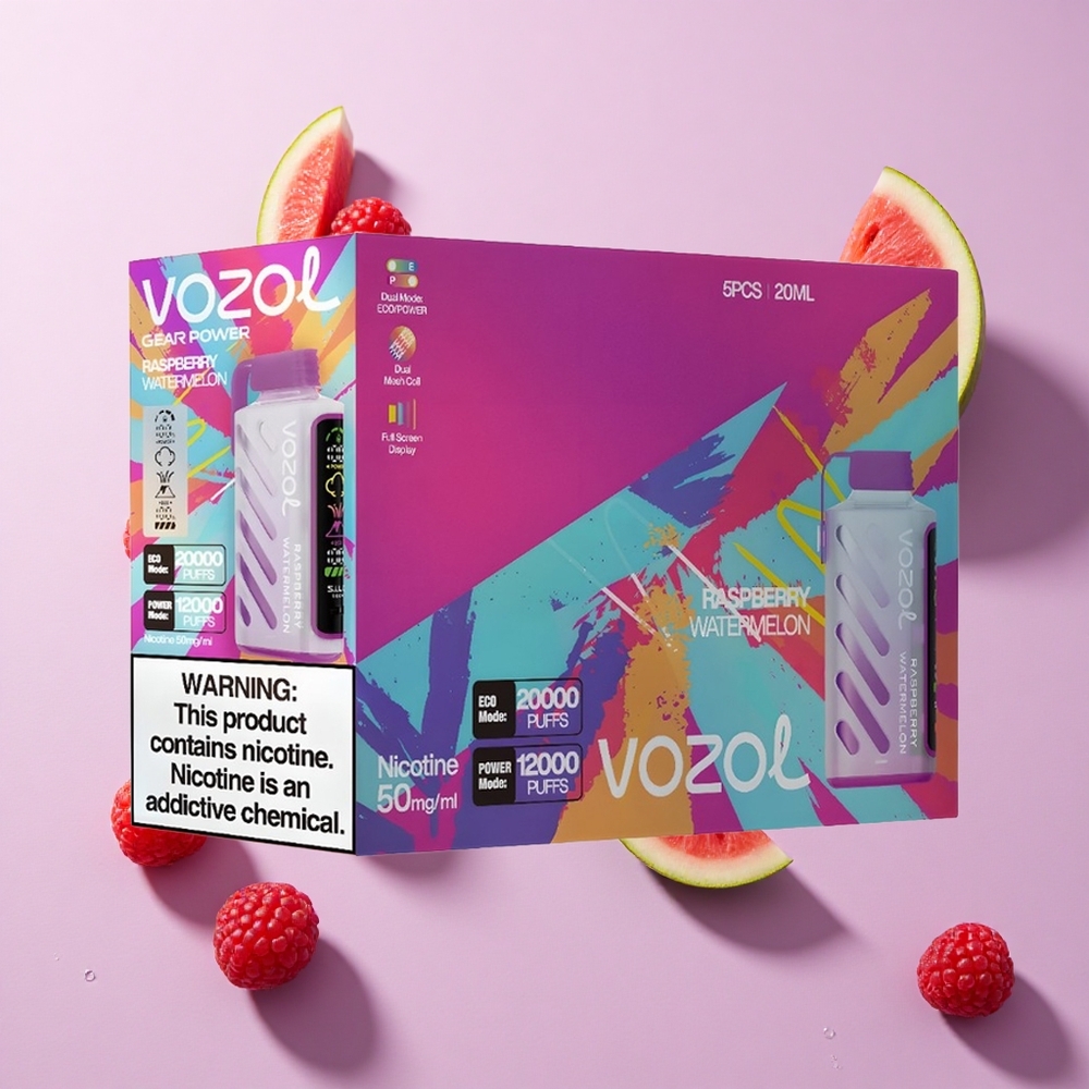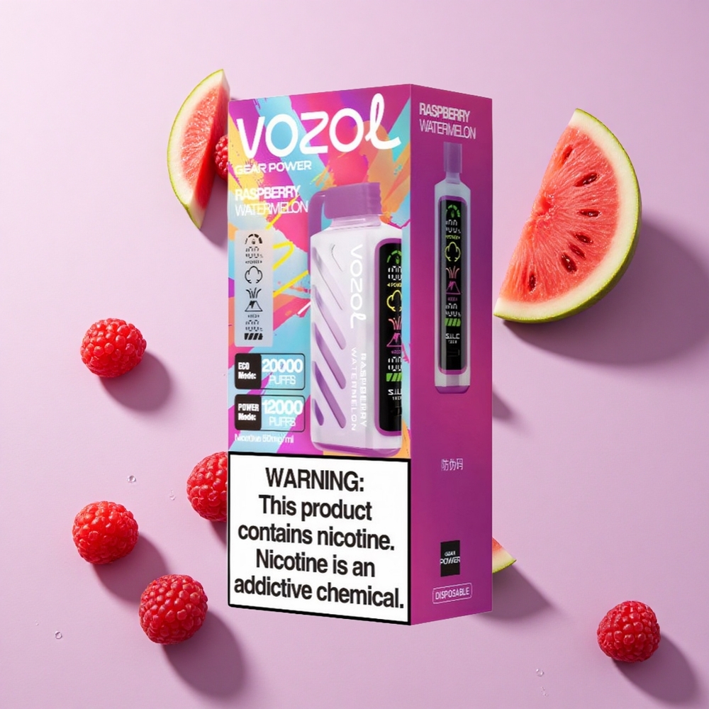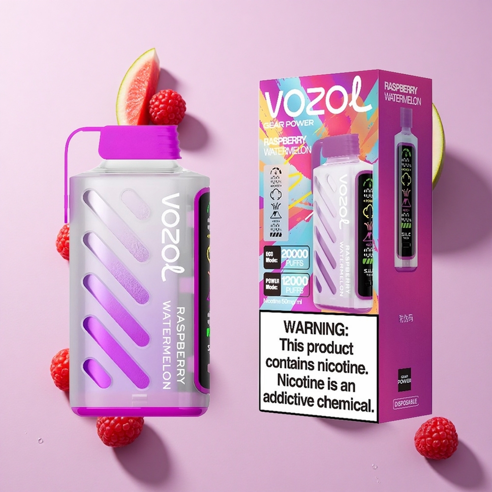 Framboos Watermeloen VOZOL Gear Power 20000 Puffs Wegwerp Vape met 20mL Voorgevulde E-Liquid Capaciteit en Dual Mesh Coil