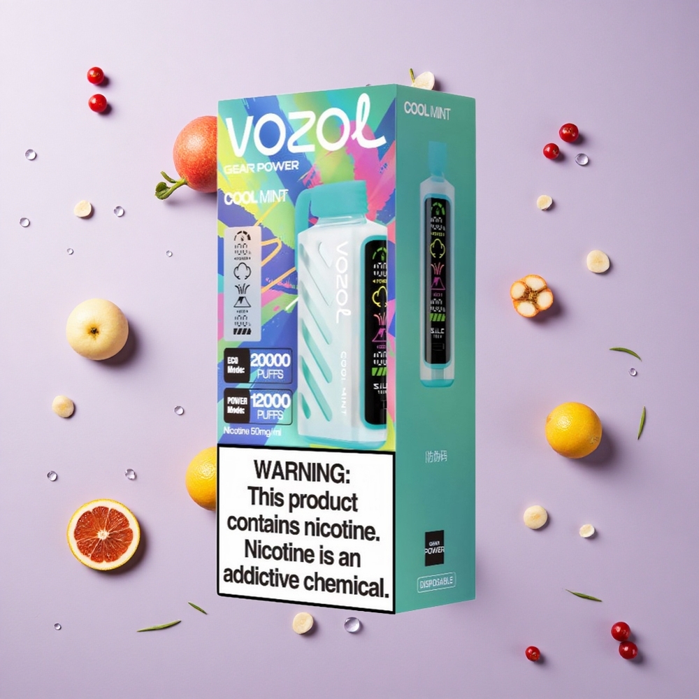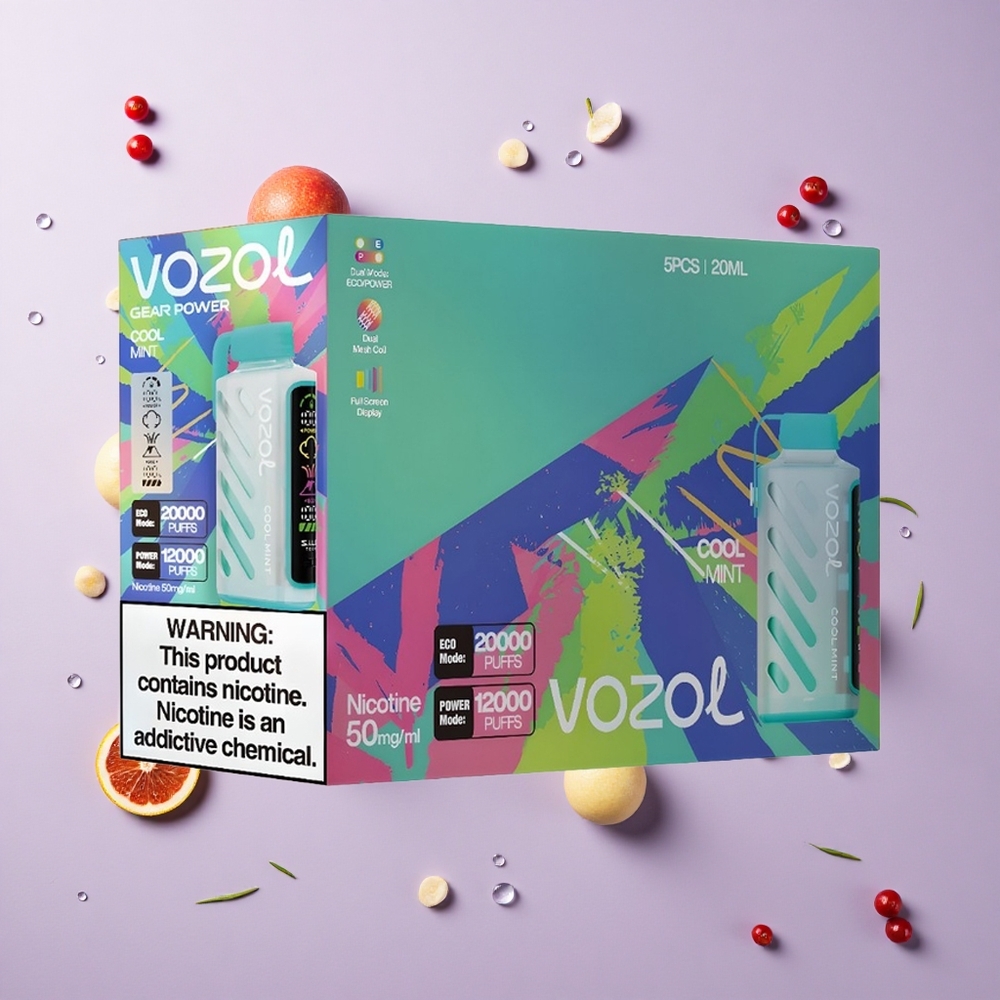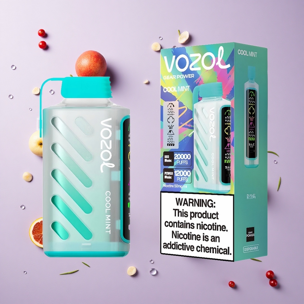 Koel Munt VOZOL Gear Power 20000 Puffs Wegwerp Vape met Full Screen Display en Dual Mesh Coil.