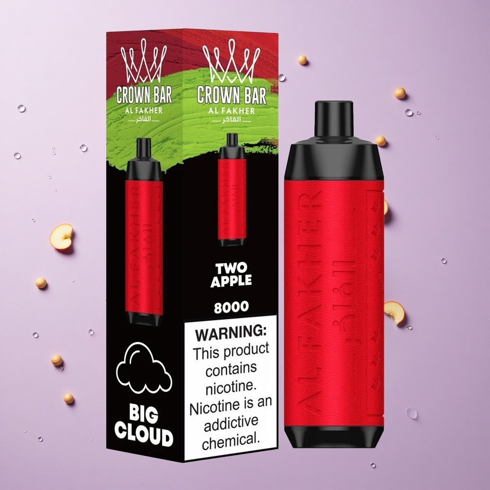 Twee Appel Al Fakher Crown Bar 8000 Wegwerp Vape Met 18ml e-Vloeistof Capaciteit en Tot 8000 Pufs