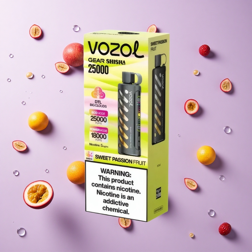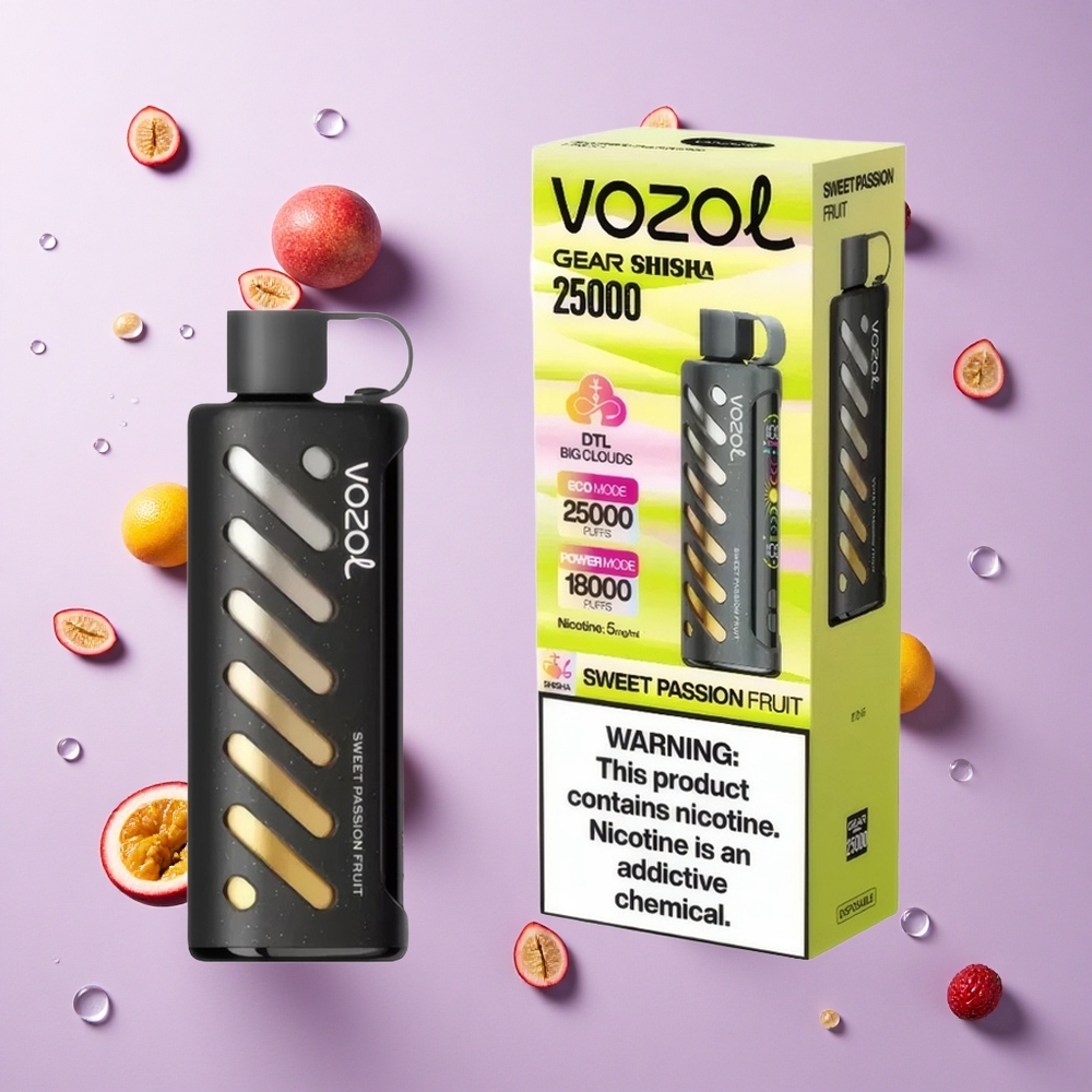 Zoete Passievrucht VOZOL Gear Shisha 25000 Puffs Wegwerpe-sigaret met Dual Mesh Dual Modes en Smart Chip: S.i.L.C Tech